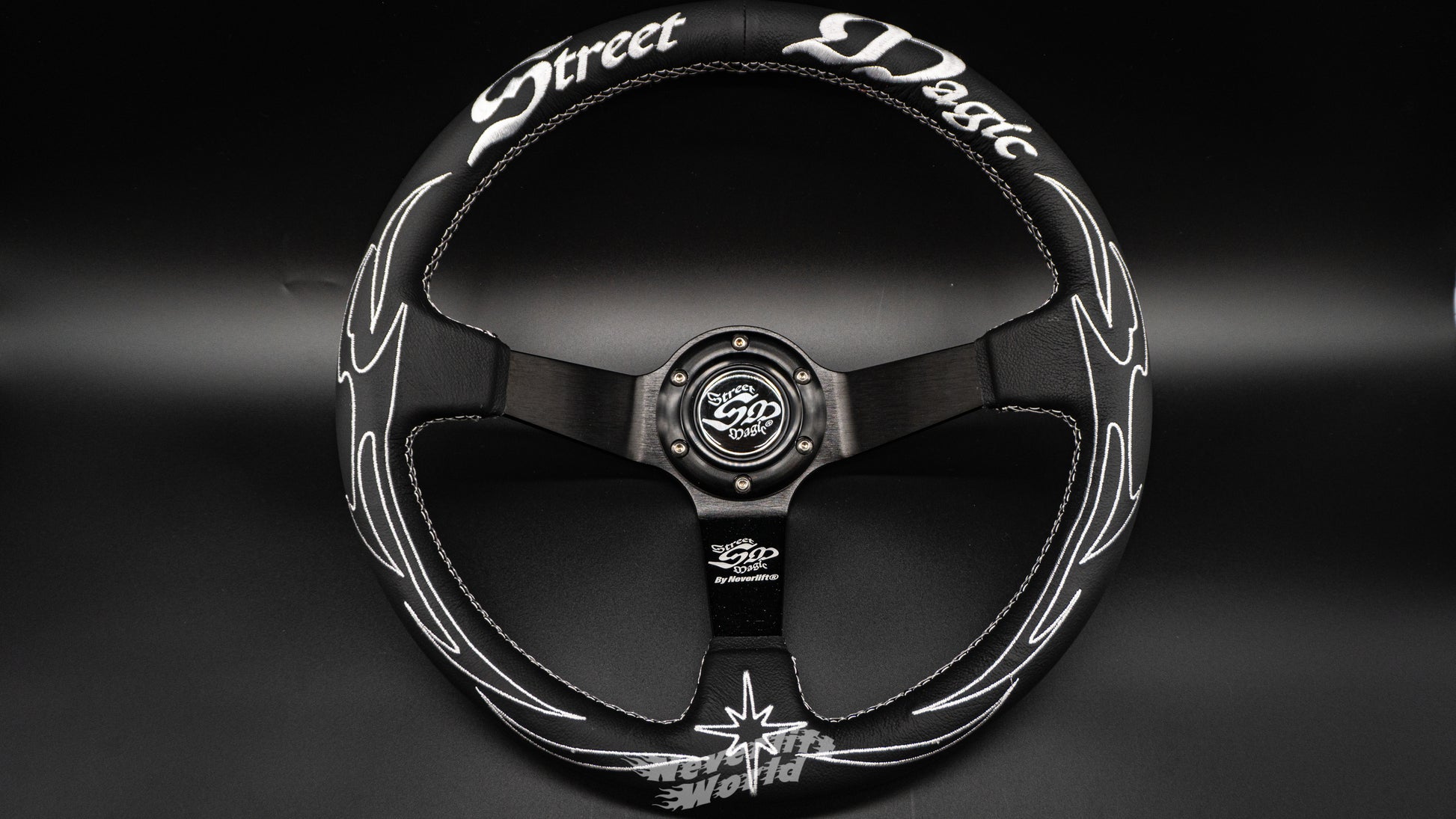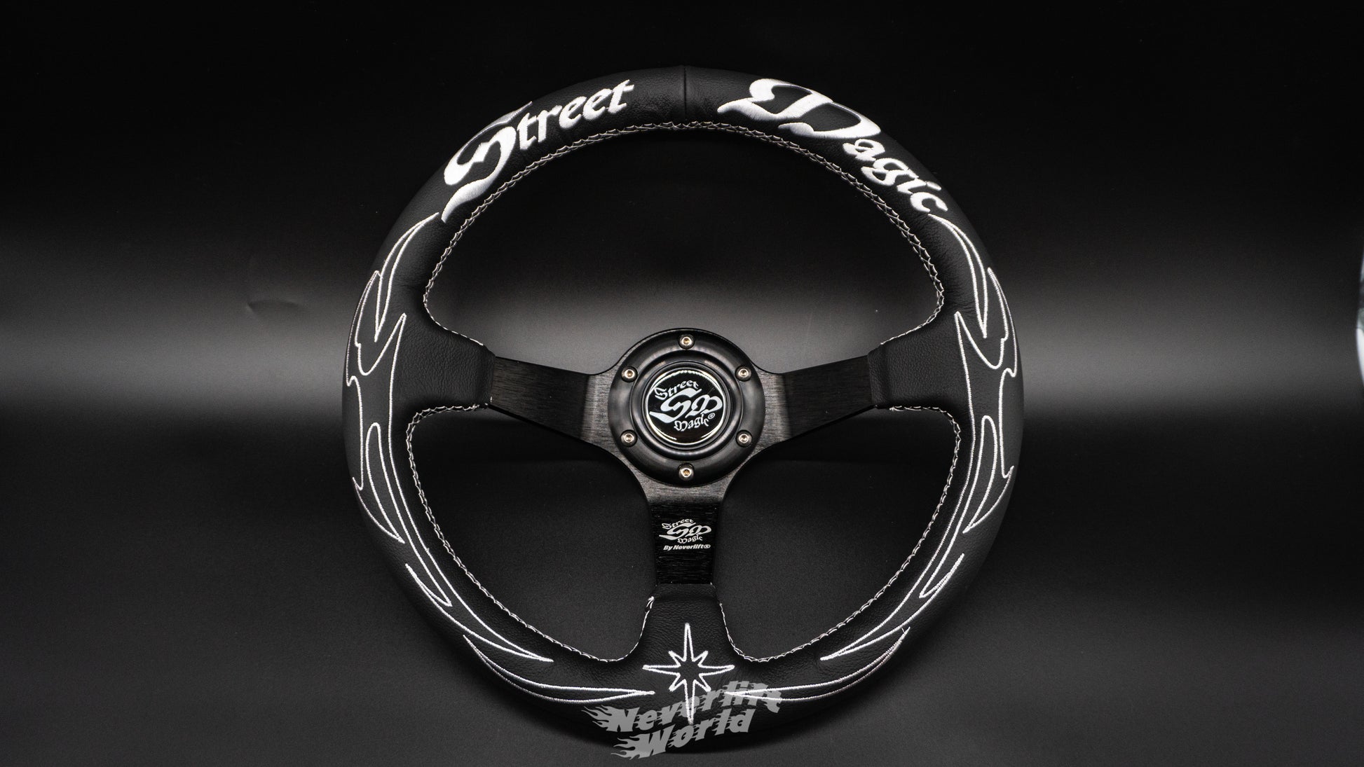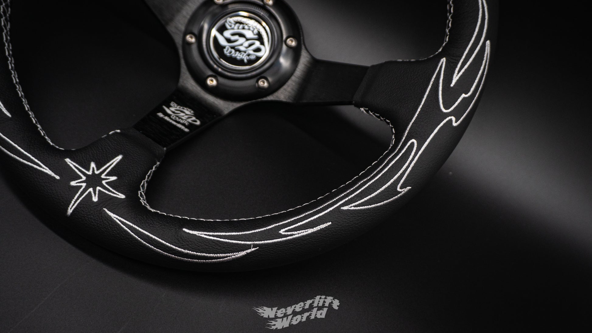 The V2 ๐๐๐๐๐๐ ๐๐๐๐๐ยฎ racing wheel brings a subtle tribal design, stitched ๐๐๐๐๐๐ ๐๐๐๐๐ยฎ logos and laser etched details. White stitching on black premium leather for nice bold clean look, heavy on the hot styling but not too crazy it conflicts with your interior tune up.